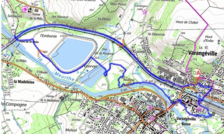 Départ 8h45 parking de la salle des sports de Varangéville. Départ vers passerelle SNCF, puis Prieuré - parcours de santé - tour des digues Novacarb - retour par piste cyclable.