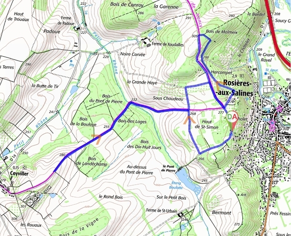 Parcours aller-retour vers Coyviller jusqu'aux serres (sans passer par le bois) et retour sur le plateau.