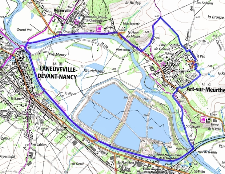 Départ ART SUR MEURTHE . Intersection entre rue de la MEURTHE, chemin des CROQUOTTES et chemin de SAUSSAIS