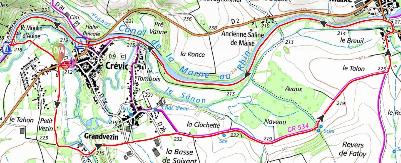 Boucle de 9.5 km - départ vers Grandvezin - on rejoint Maixe à travers champs - retour par la voie cyclable