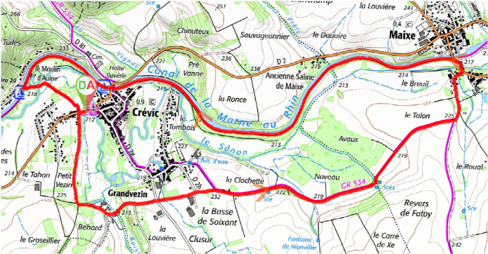 On rejoint la piste cyclable puis on reste dessus jusqu'à Maixe - retour par les champs