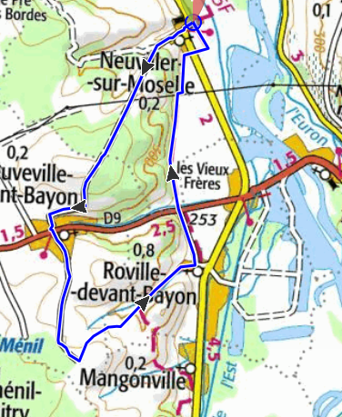 Boucle de 10 km vers Laneuveville devant Bayon dénivelé 142m