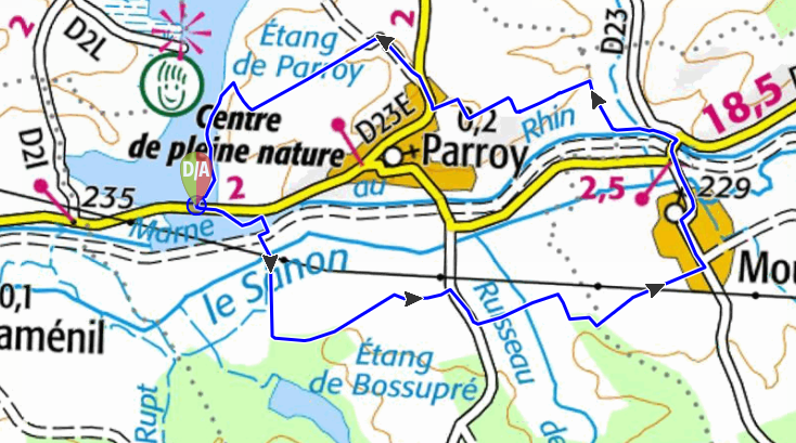 Boucle 10 km vers Mouacourt et Parroy. peu de dénivelé. départ parking près de la digue environ 4,5km de Bauzemont